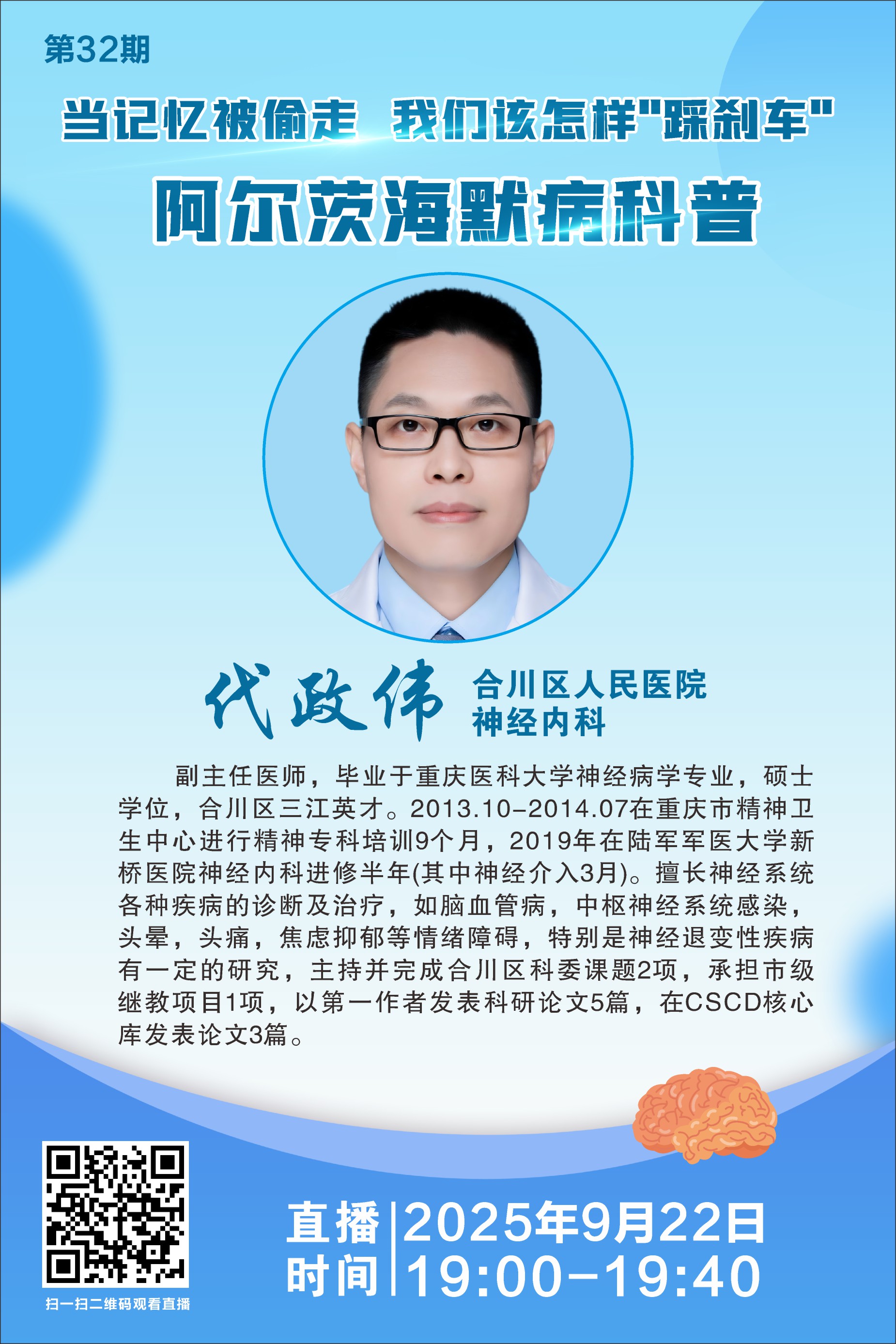 健康合川・公益健康讲坛直播第32期:阿尔茨海默病科普——当记忆被偷走,我们该怎样“踩刹车”